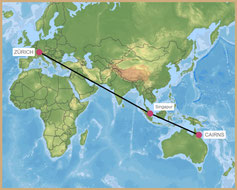 REISE-STRECKE: Flug Zürich - Singapur - Darwin